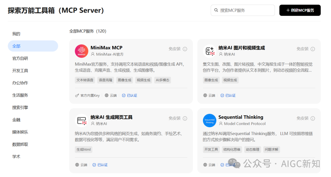 看多了各家发的支持MCP协议的产品,要么是支持其中几种常用的,有一些还得手工去安装,对于新书小白来说,非常折腾人。
