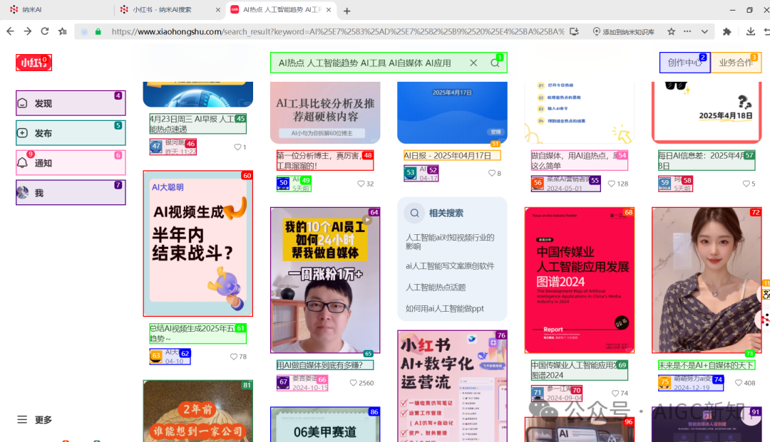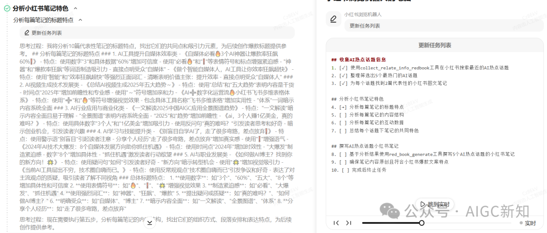 如下,就是browser_automation_task工具在浏览小红书笔记的网页截图,它先是去搜了关键词,然后根据排名,一个一个去读了小红书的图片以及笔记内容。