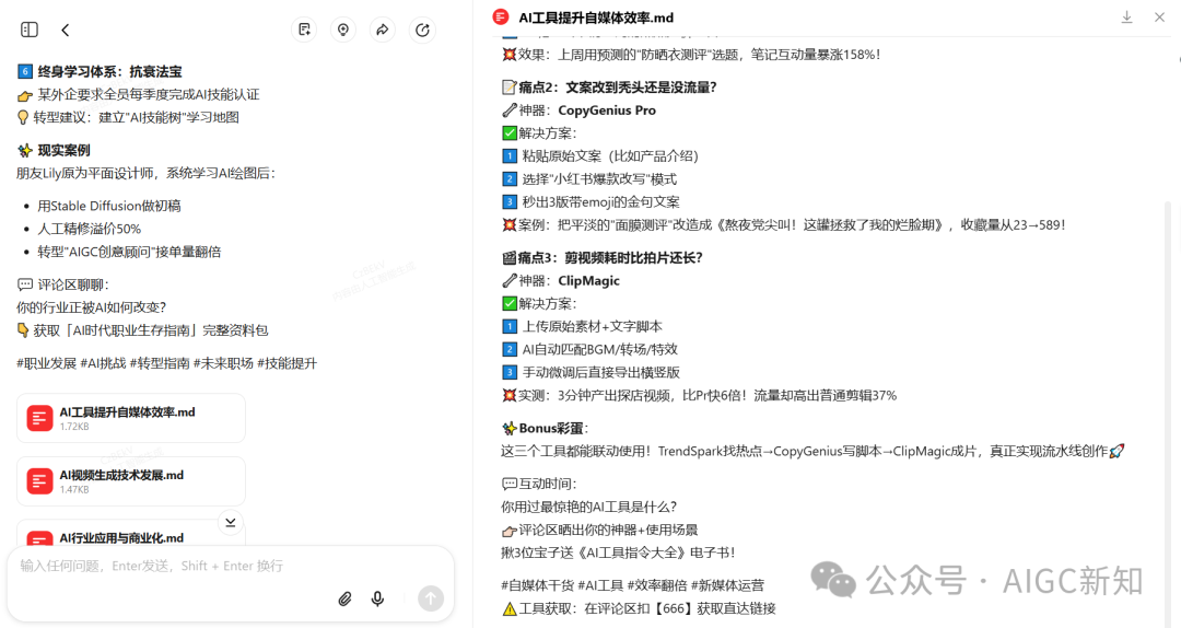 再来一个案例,比如我现在就是一个小红书的AI博主,想发笔记涨粉