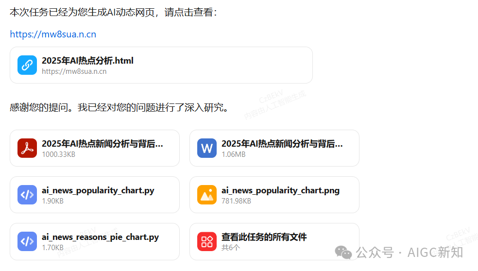 最终为我们生成如下的文件和网页:动态版网页、详实的研究报告。