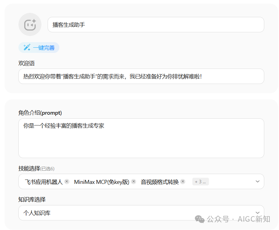 体验了官方的智能体,我发现目前他们还没有生成播客的,不如我自己做一个试试看。