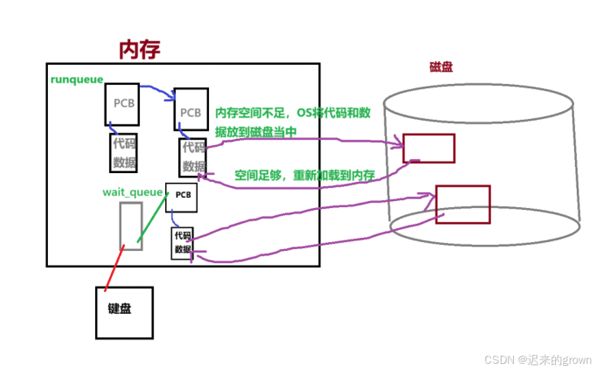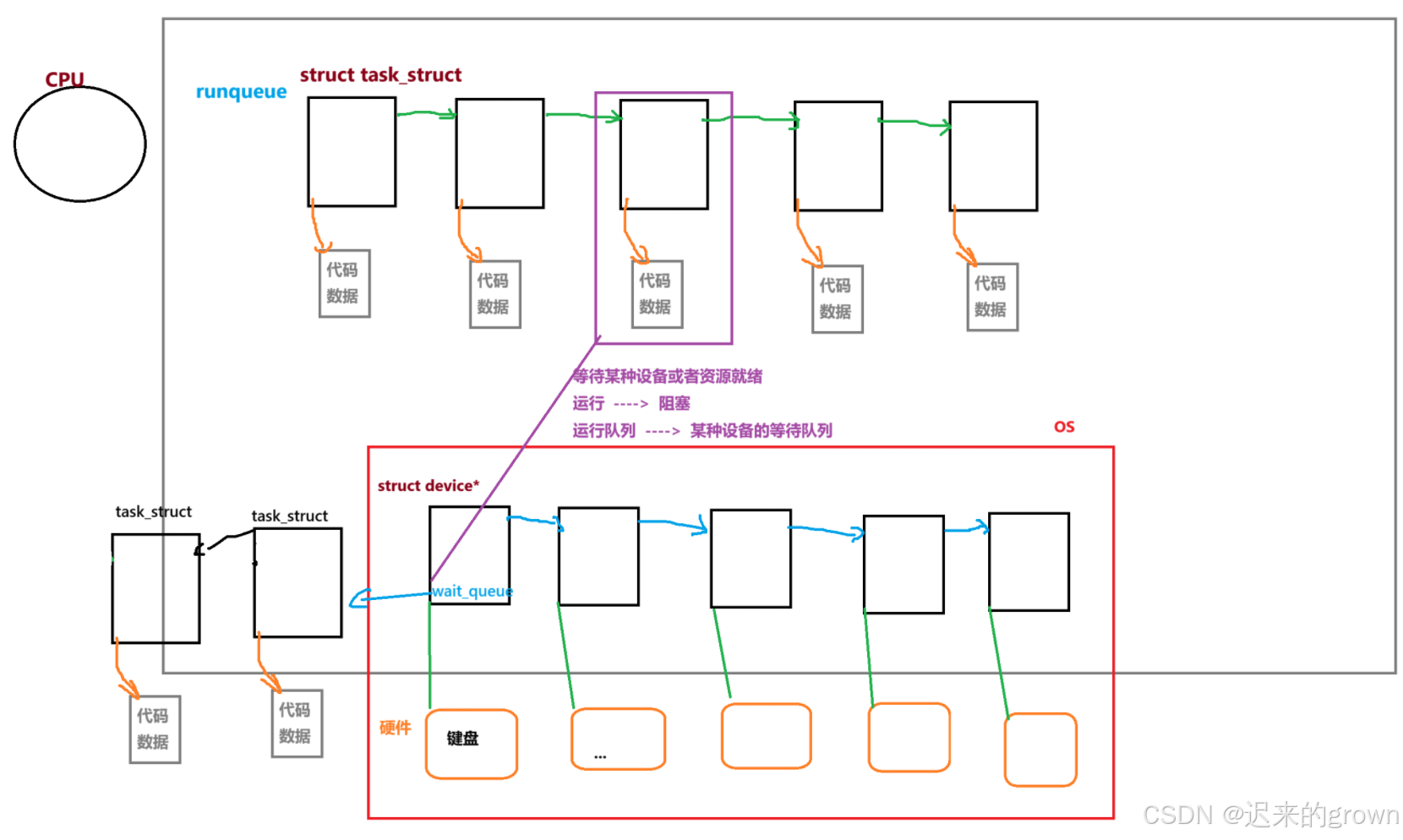 CPU的运行队列变到了某个硬件资源的等待队列(wait_queue)。