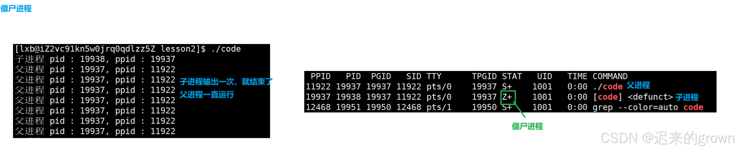 简单来说就是,子进程在运行结束之后,不会直接进入死亡状态X,而是处于僵尸状态Z;直到父进程对子进程的退出(返回)进行处理(调用wait()或者waitpid()),子进程才会真正意义上的结束。
