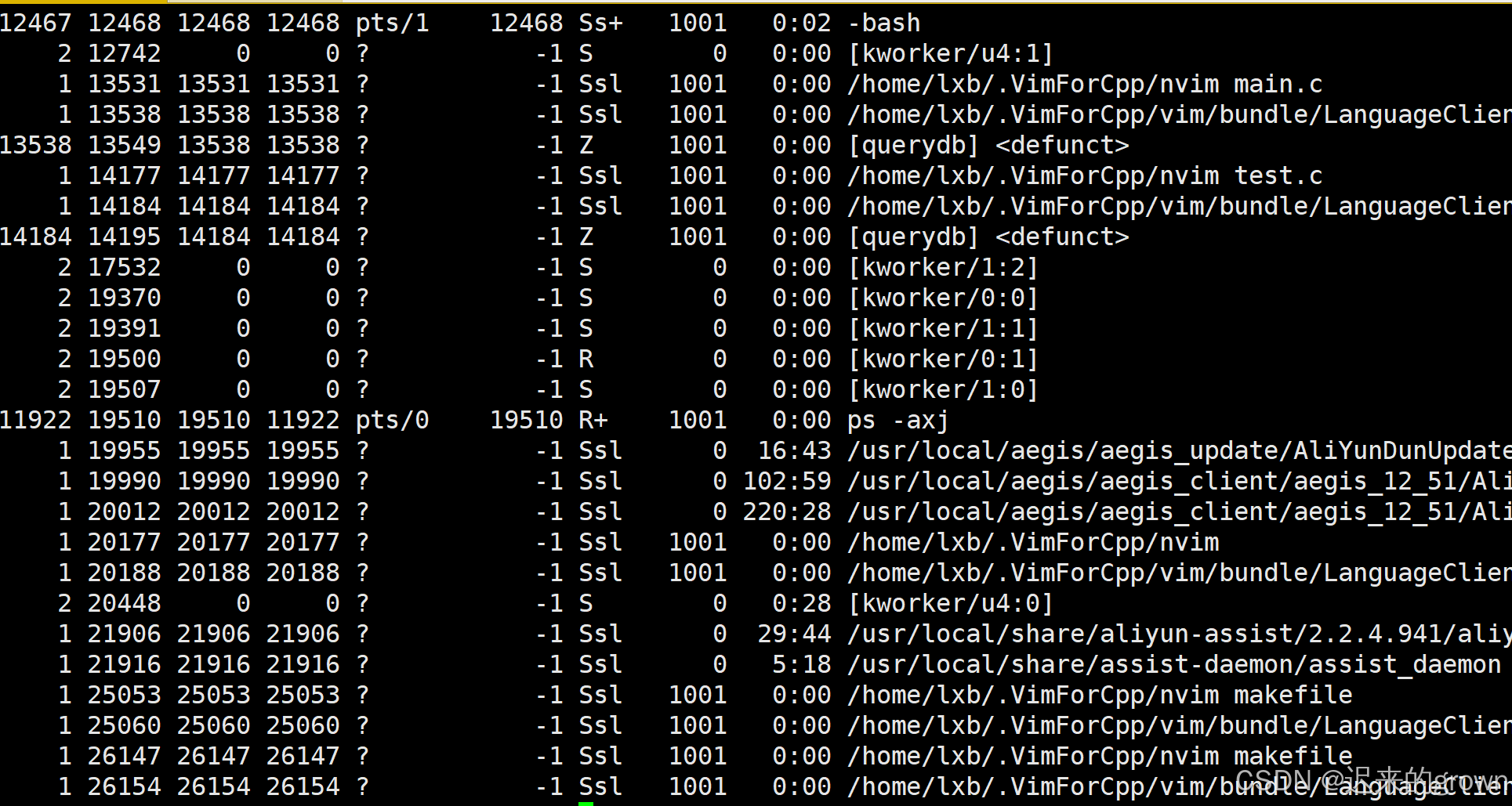 这里留下一个疑问,我们正在运行中的程序,为什么我们查看时还是处于S状态?
