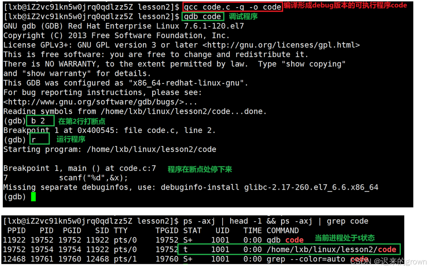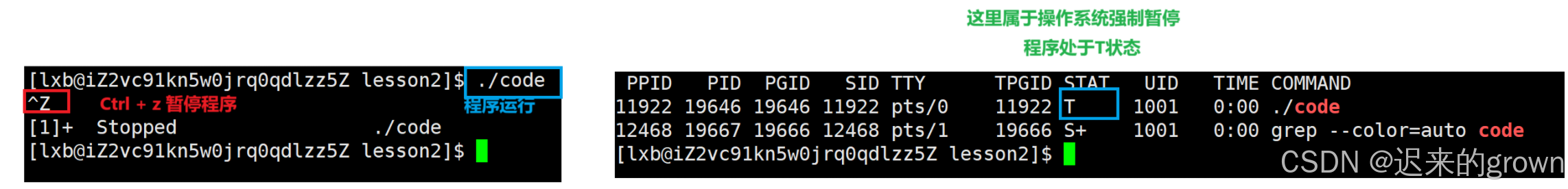 当我们某些进程执行时存在一些危险的操作行为时,这时候操作系统就先暂停此进程;此时该进程就处于T状态;