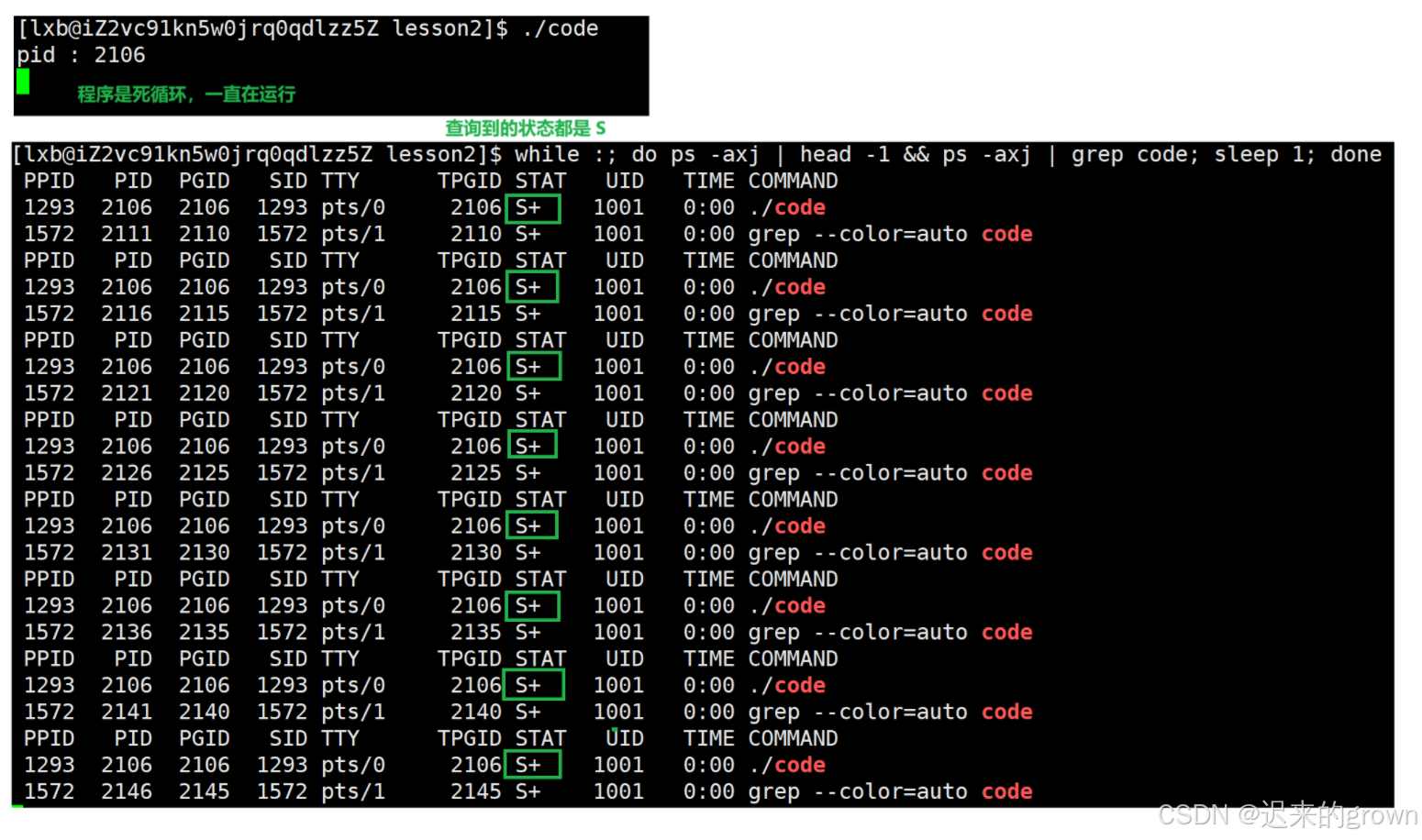 init/systemd接管后,需通过系统级工具(如kill)手动终止,增加运维复杂度。现在我们来看一下问题:我们正在运行中的程序,为什么我们查看时还是处于S状态?