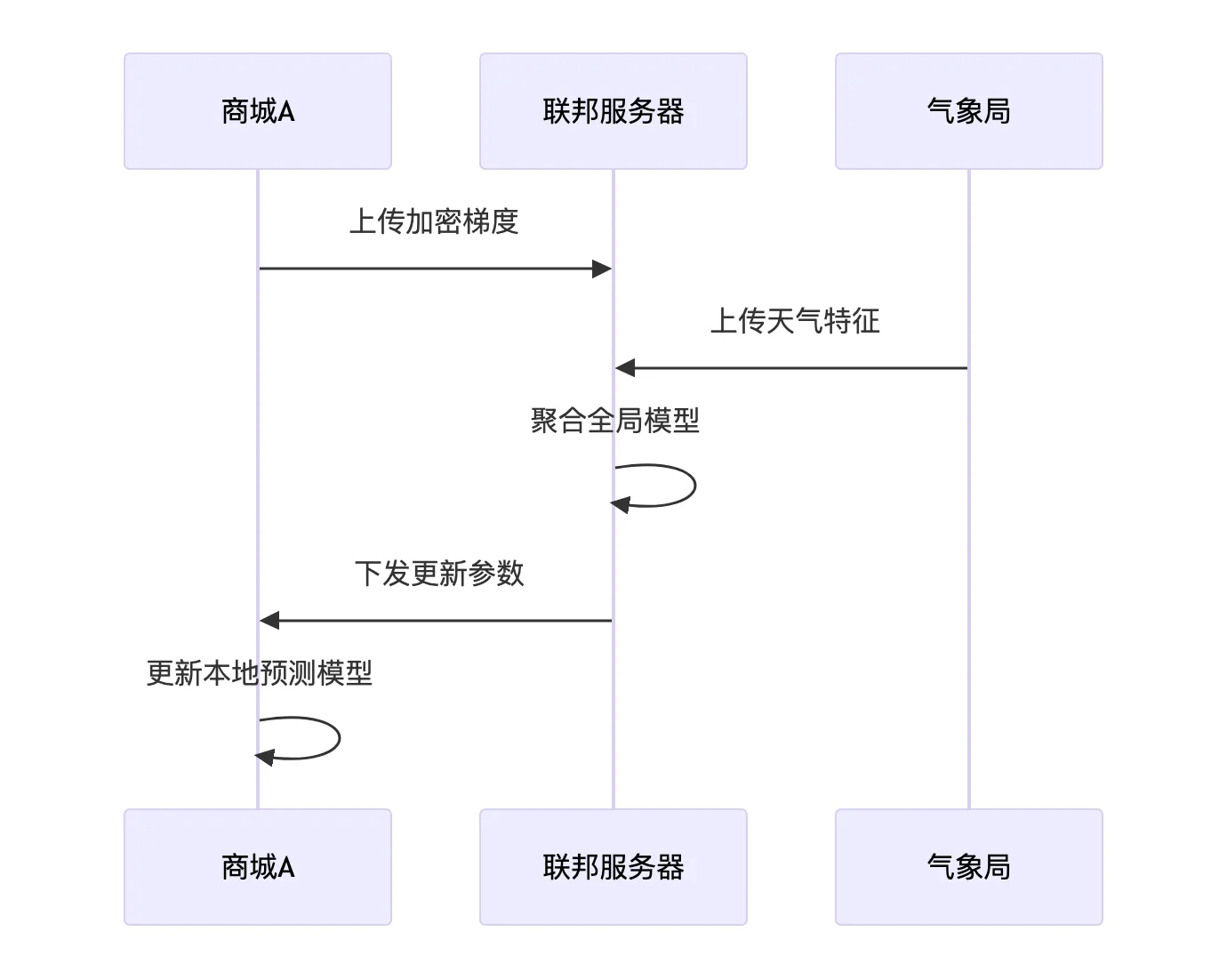 * 聚合参与者梯度并更新模型参数