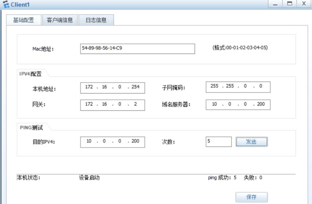 Client1 ping测试(Client1->DNS server)