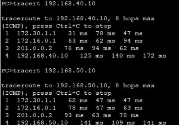 PC3 ping/tracert测试(PC3->PC1)