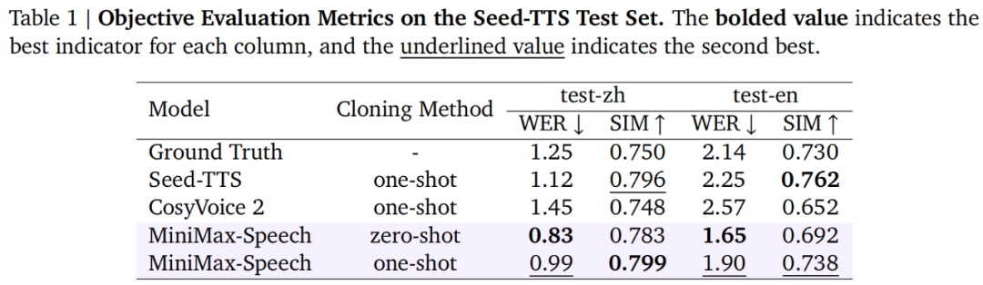 其中,在字错率(WER,越低越好)和说话人相似度(SIM,越高越好)等关键语音克隆指标上均取得 SOTA 结果。