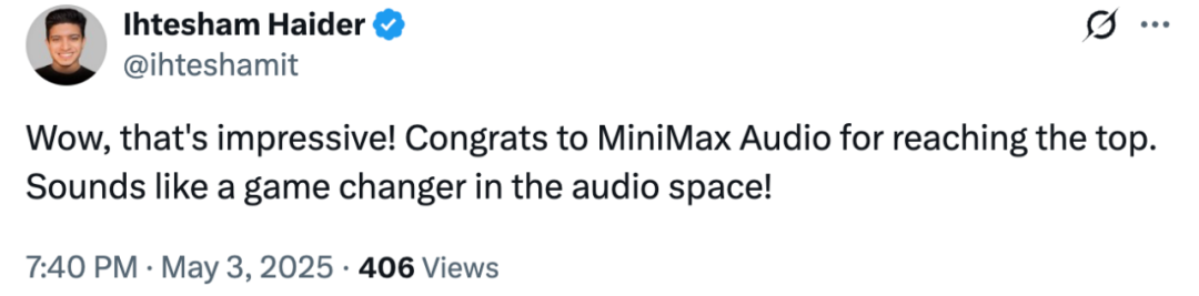这项成绩直接震惊国外网友,他们纷纷表示:「MiniMax 将成为音频领域的破局者。」