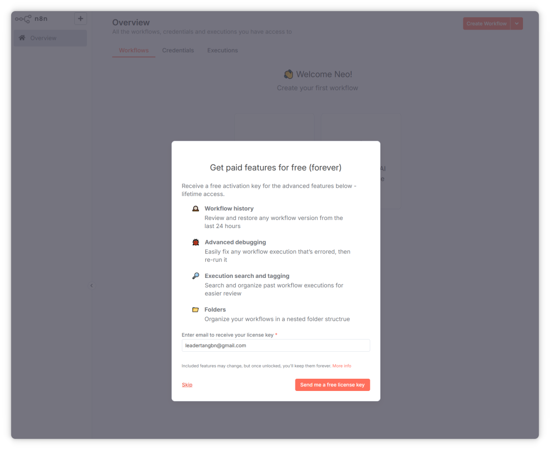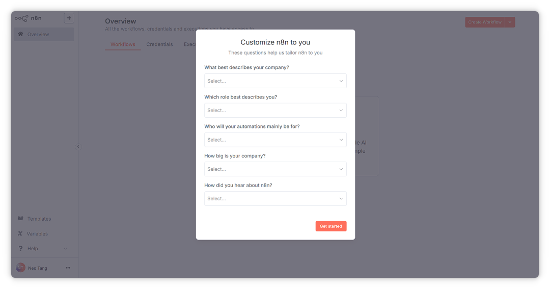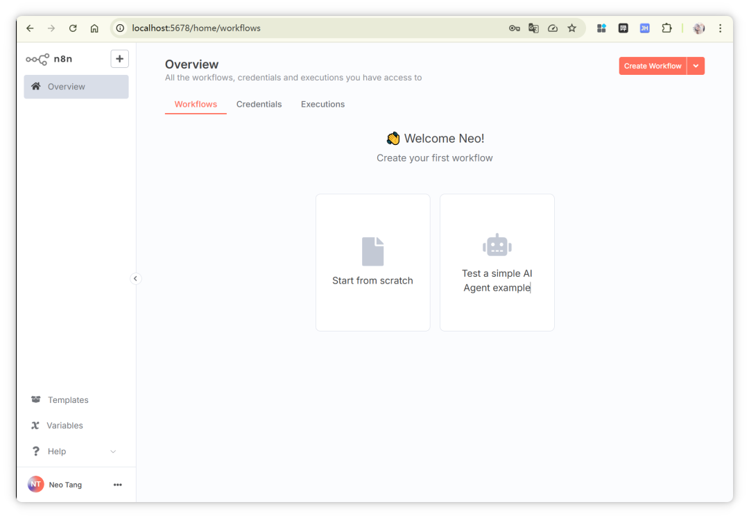 至此,已成功进入 n8n 主界面。