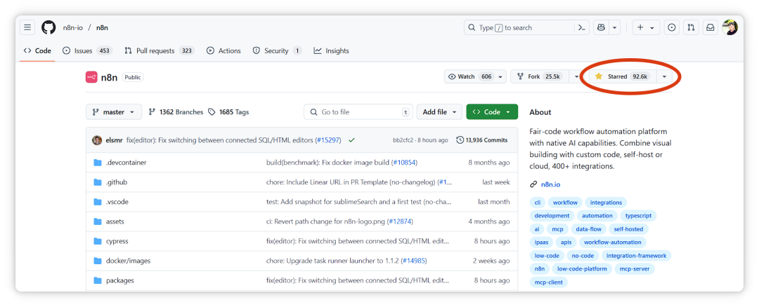 n8n 是当前非常热门的开源 AI 工作流平台,在 GitHub 上已获得超过九万颗 star。