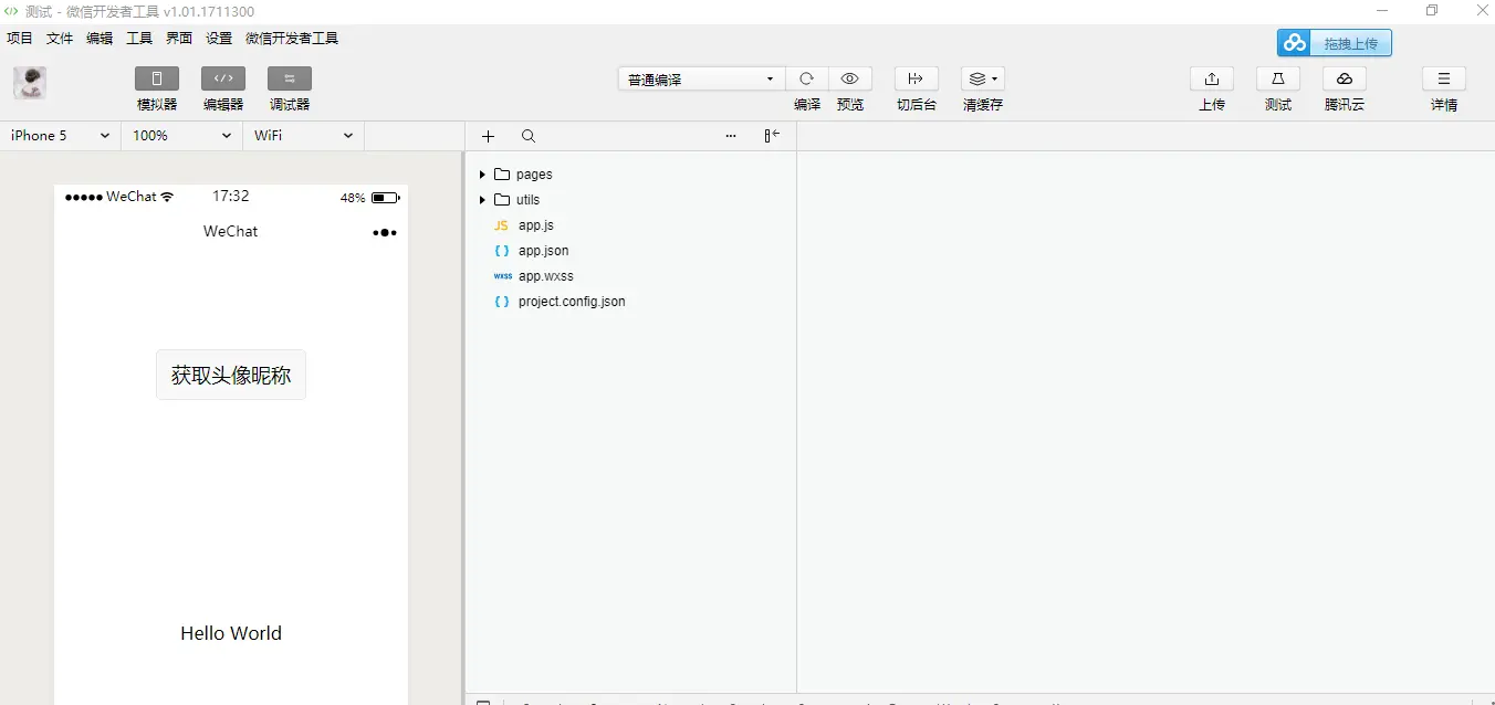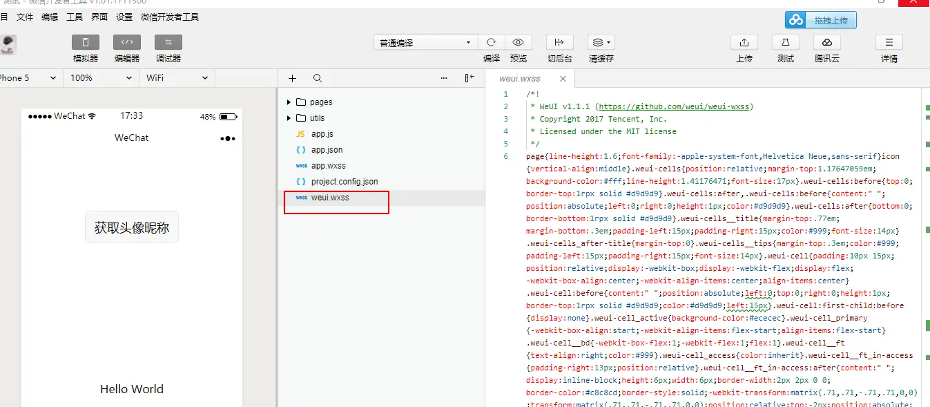 3、新建微信小程序项目,将weui.wxss文件导入到小程序项目的根目录下: