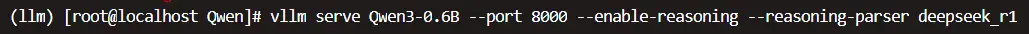 vllm serve Qwen3-0.6B --port 8000 --enable-reasoning --reasoning-parser deepseek_r1
