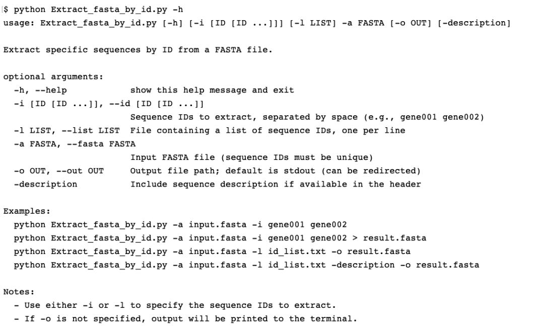 # 脚本默认只提取序列和序列ID,不包含序列后的注释信息,可以使用