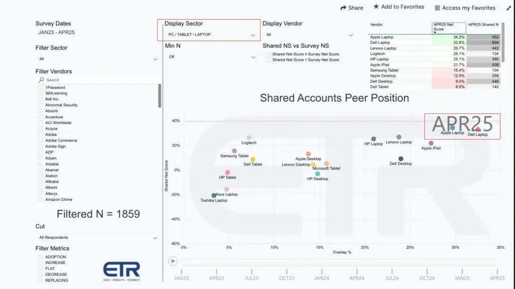 我们的研究表明,戴尔的商用笔记本电脑系列拥有同类最佳的速度_和_最广泛的足迹,这在成熟类别中很少见。这种领导地位不仅维持了公司的供应链规模经济,还为戴尔提供了一个有利的切入点,以便在客户更新其设备时向上销售边缘 AI 工作流程和后端基础设施。