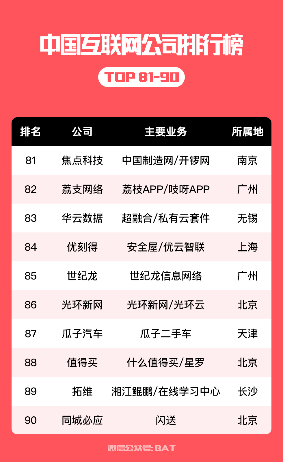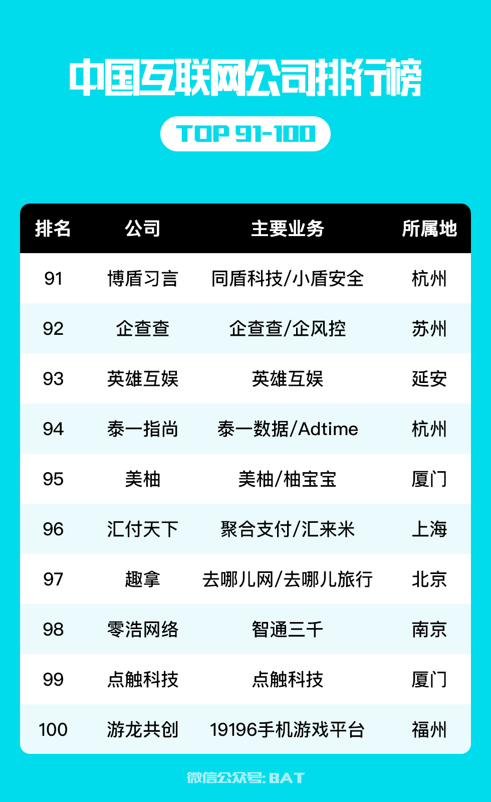 一起来看看,中国互联网综合实力前100家企业都有哪些公司上榜,以及分别在哪些城市——