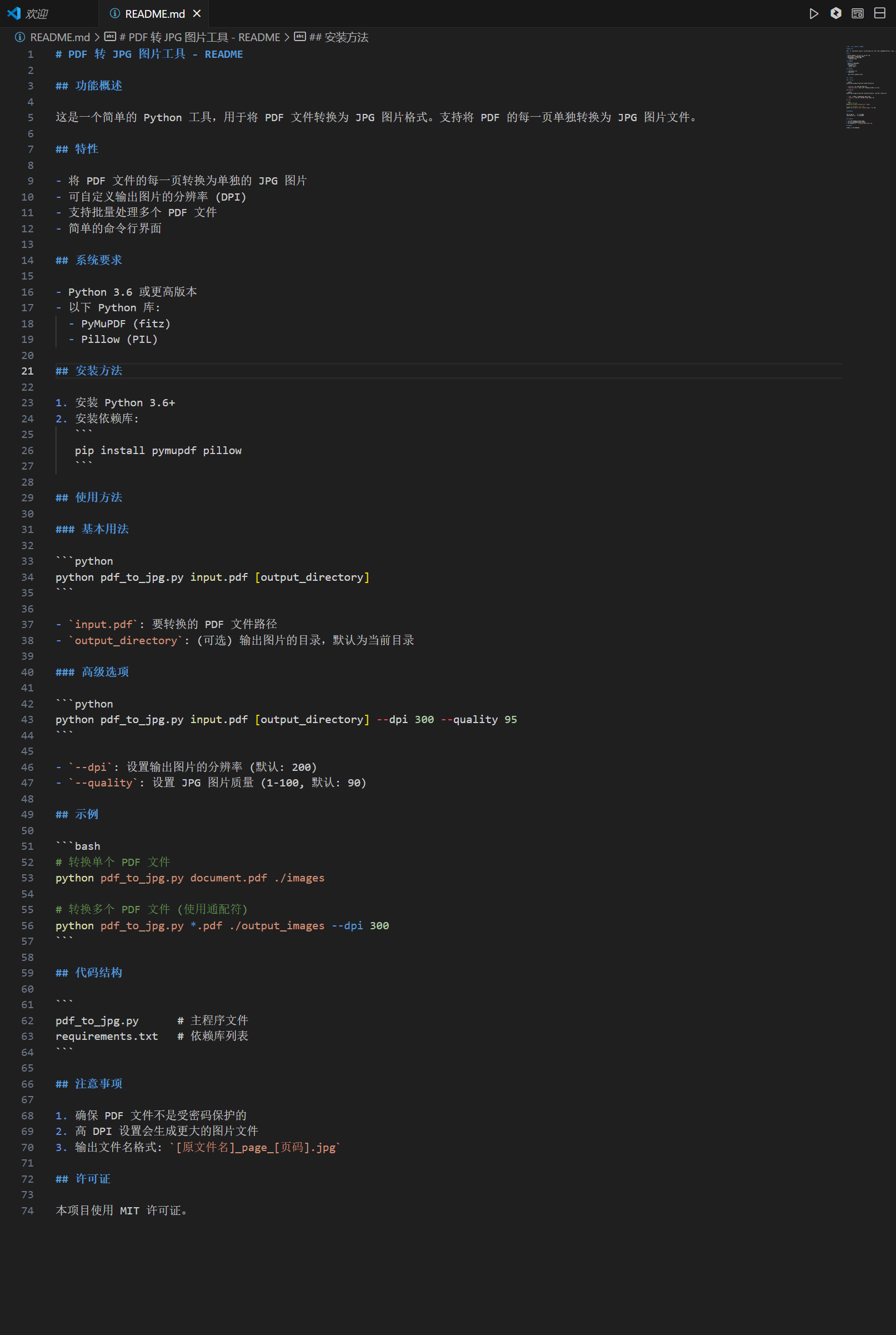 我们直接将生成的信息复制到我们的README文件里面