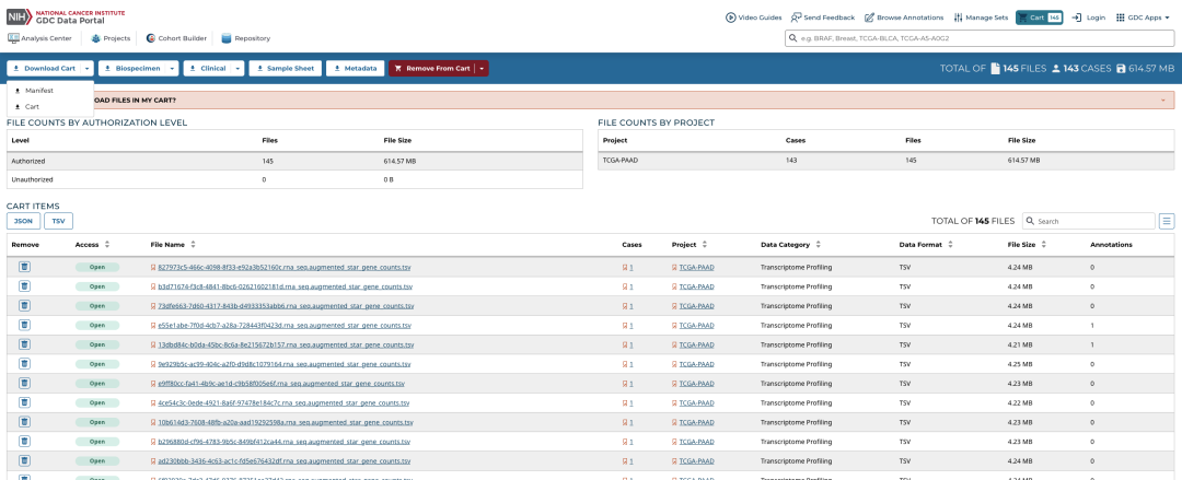 下载 TCGA 数据的 manifest 文件后,你可以使用 GDC Data Transfer Tool 来下载实际的数据文件。以下是具体步骤: