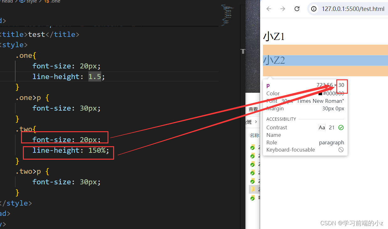 line-height1.5和line-height:150%的区别父元素设置line-height:1.5会直接继承给子元素,子元素根据自己的font-size再去计算子元素自己的line-height。 父元素设置line-height:150%是计算好了line-height值,然后把这个计算值给子元素继承,子元素继承拿到的就是最终的值了。此时子元素设置font-size就对其line-height无影响了。
