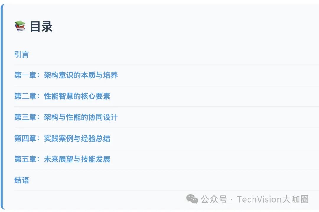 本文从架构意识培养、性能智慧积累、协同设计实践、案例分析总结和未来发展展望五个维度,系统性地探讨了现代软件架构师应该具备的核心能力和发展路径。