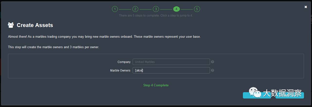 按照提示执行必要的步骤,进行marbles的用户的创建,系统启动时默认已经由cli创建了Dummy0(United Marbles)和Dummy1(eMarbles)用户