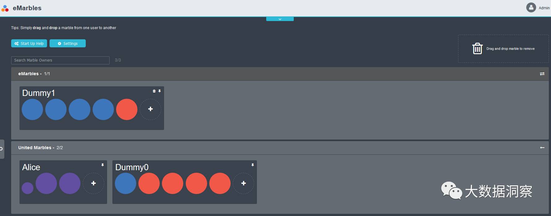 可以看到属于组织org1(United Marbles),org2(eMarbles)的所有用户,如果是3001端口访问的,当前用户只能操作org1(United Marbles)中的用户的弹珠。如果是3002端口访问的,当前用户只能操作org2(eMarbles)中的用户的弹珠。