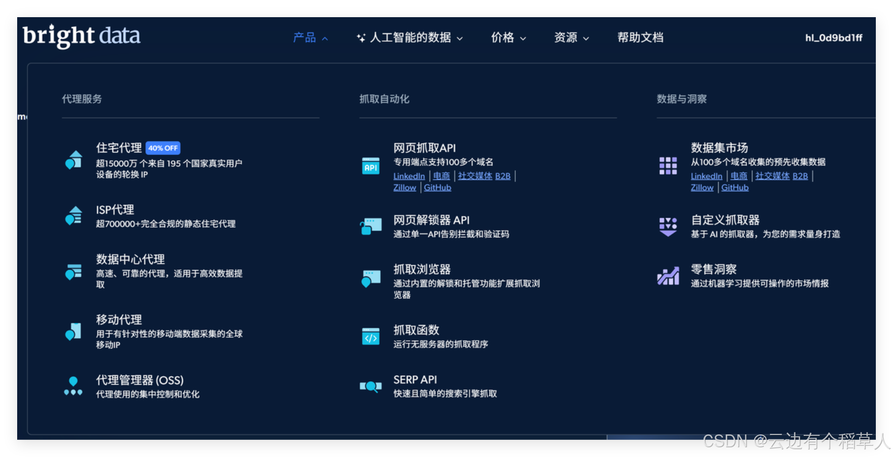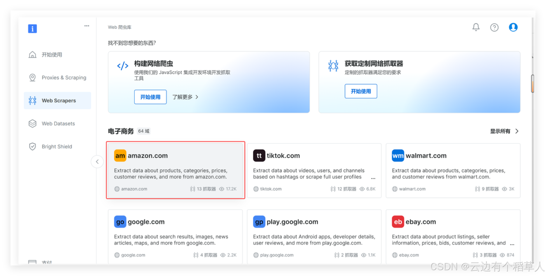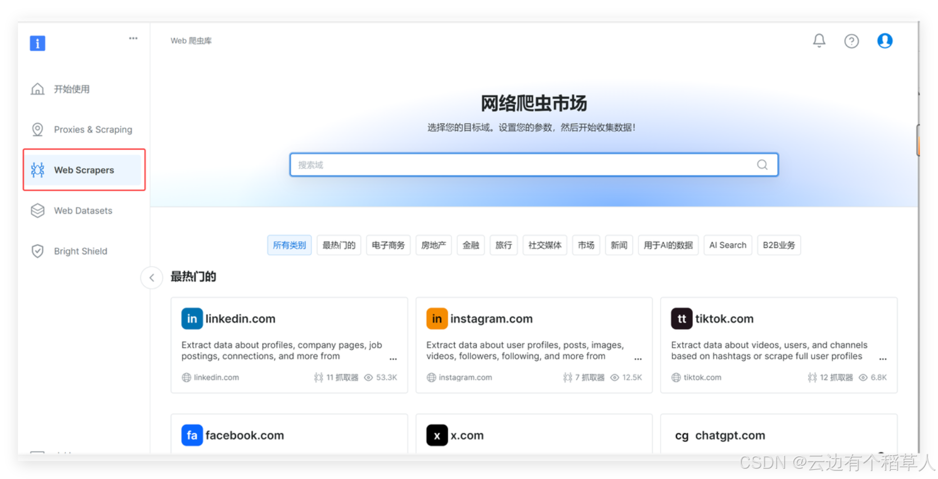 Bright Data在网页抓取工具方面具备强大的全球住宅和移动代理网络,能有效绕过反爬虫机制,保障抓取稳定性和高成功率。其工具支持动态网页渲染和自动分页,配备易用的API接口和自动化功能,帮助用户快速、高效地获取高质量结构化数据,广泛适用于电商、金融、市场监测等多个行业,总的来说亮数据(Bright Data)是一个非常好的工具,解决了我们抓取数据的各种问题,快来体验Bright Data 网页抓取+自动化吧!