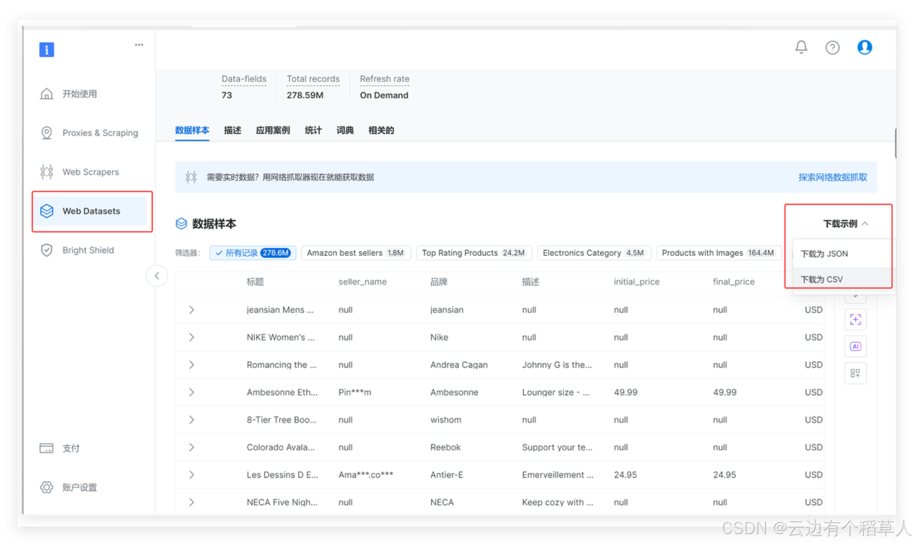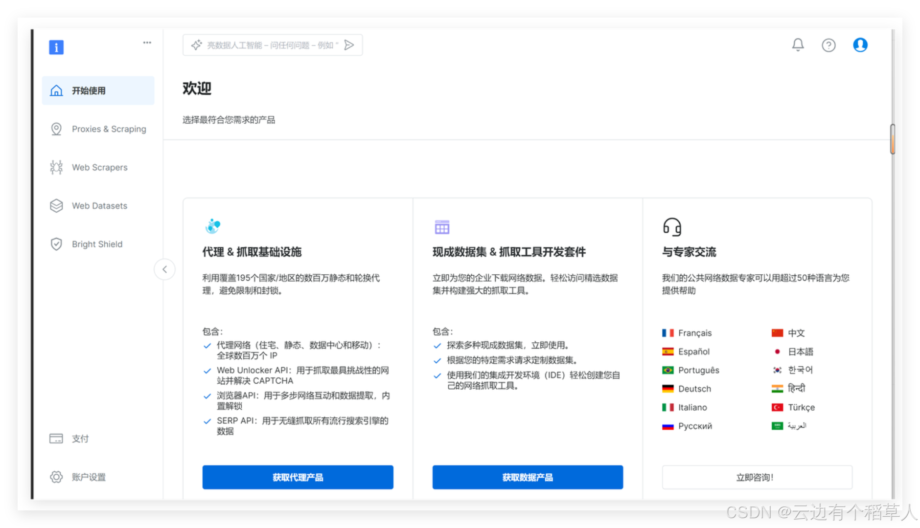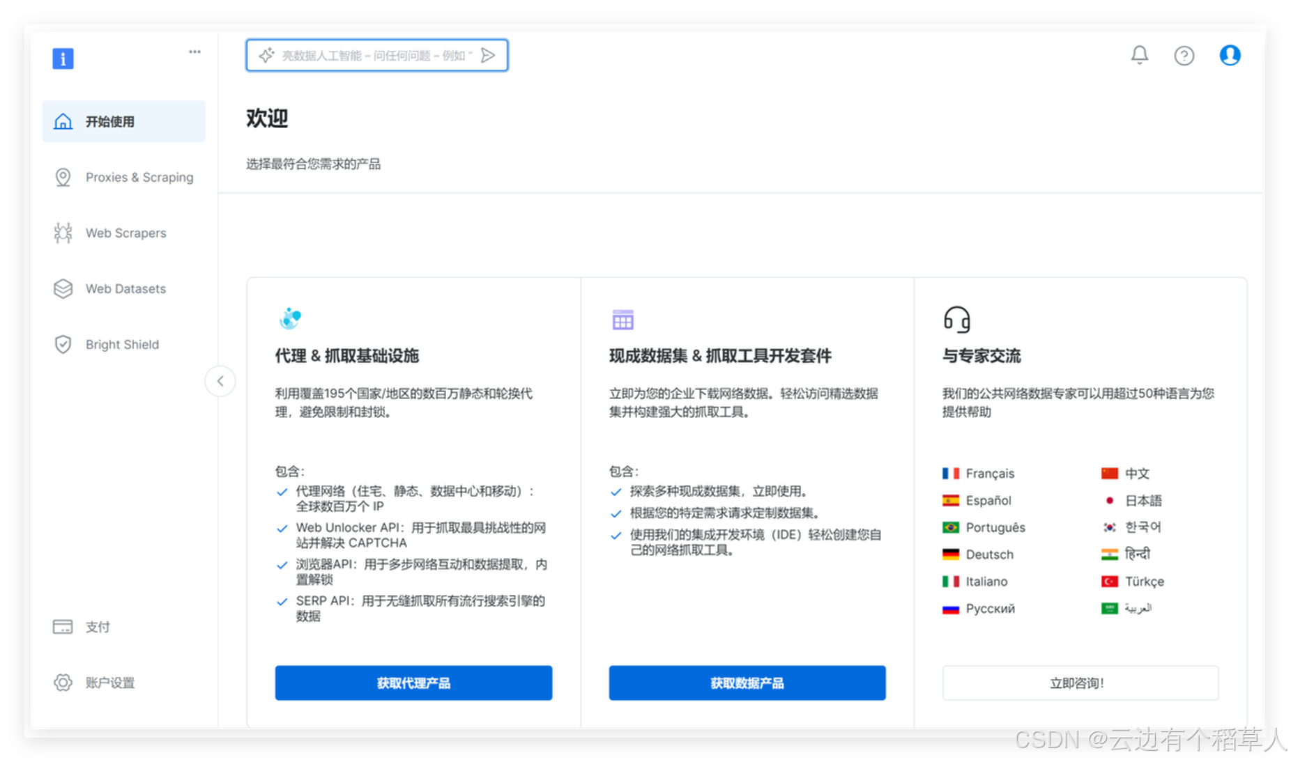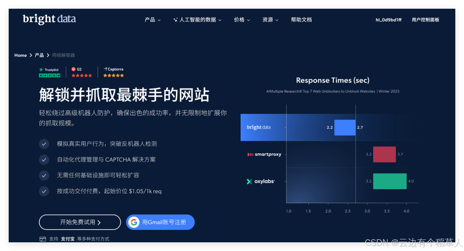 Bright Data在网页抓取工具方面具备强大的全球住宅和移动代理网络,能有效绕过反爬虫机制,保障抓取稳定性和高成功率。其工具支持动态网页渲染和自动分页,配备易用的API接口和自动化功能,帮助用户快速、高效地获取高质量结构化数据,广泛适用于电商、金融、市场监测等多个行业,总的来说亮数据(Bright Data)是一个非常好的工具,解决了我们抓取数据的各种问题,快来体验Bright Data 网页抓取+自动化吧!