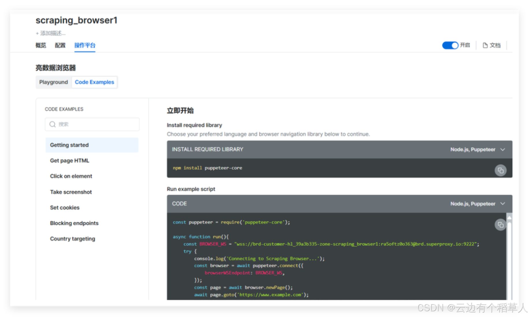 可以看到操作平台有可用的代码实例