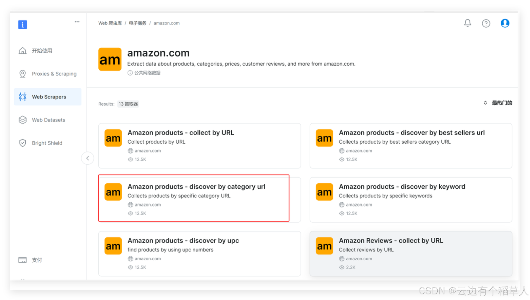 我们找到amazon.com下面的Amazon products - discover by category url,一款按照产品类别来抓取的工具