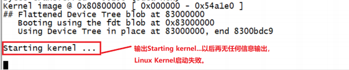 如果匹配不到对应属性,Linux 内核找不到对应的设备,则无法启动。在 uboot 输出就卡在 Starting kernel…