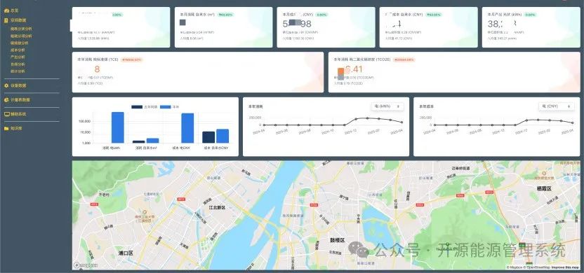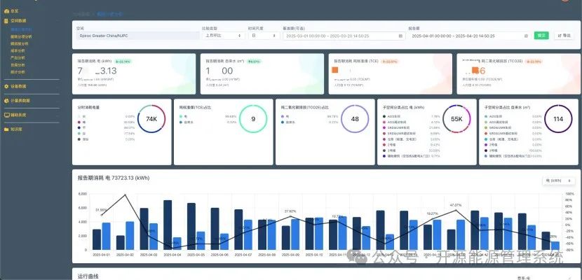 3. 动态仪表盘展示:系统提供总览页与分项分析界面,实时显示本月总能耗、成本趋势、吨标准煤消耗及碳排放占比,帮助管理者快速掌握全厂能源流动状态。