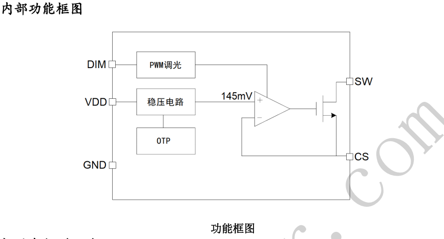 高调光性能: 支持通过DIM引脚输入PWM信号进行无级调光。