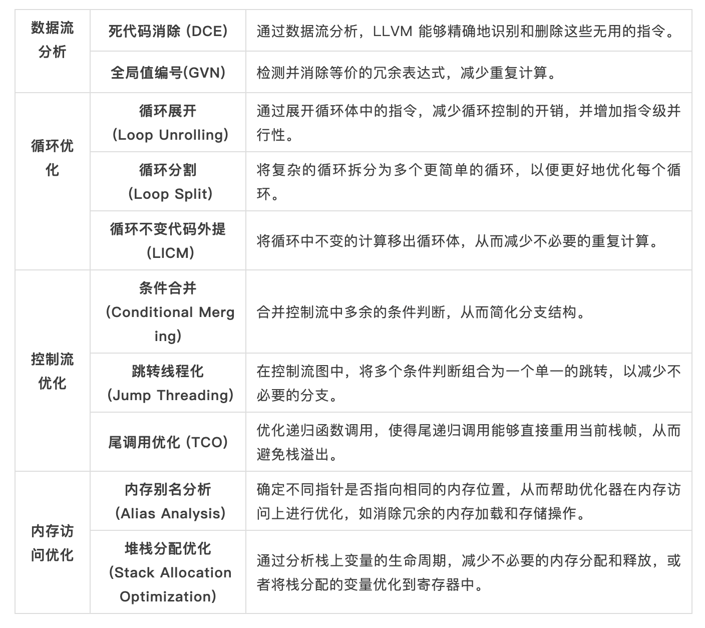 在LLVM中,优化遍是指按照一定顺序执行的一个或多个优化算法。