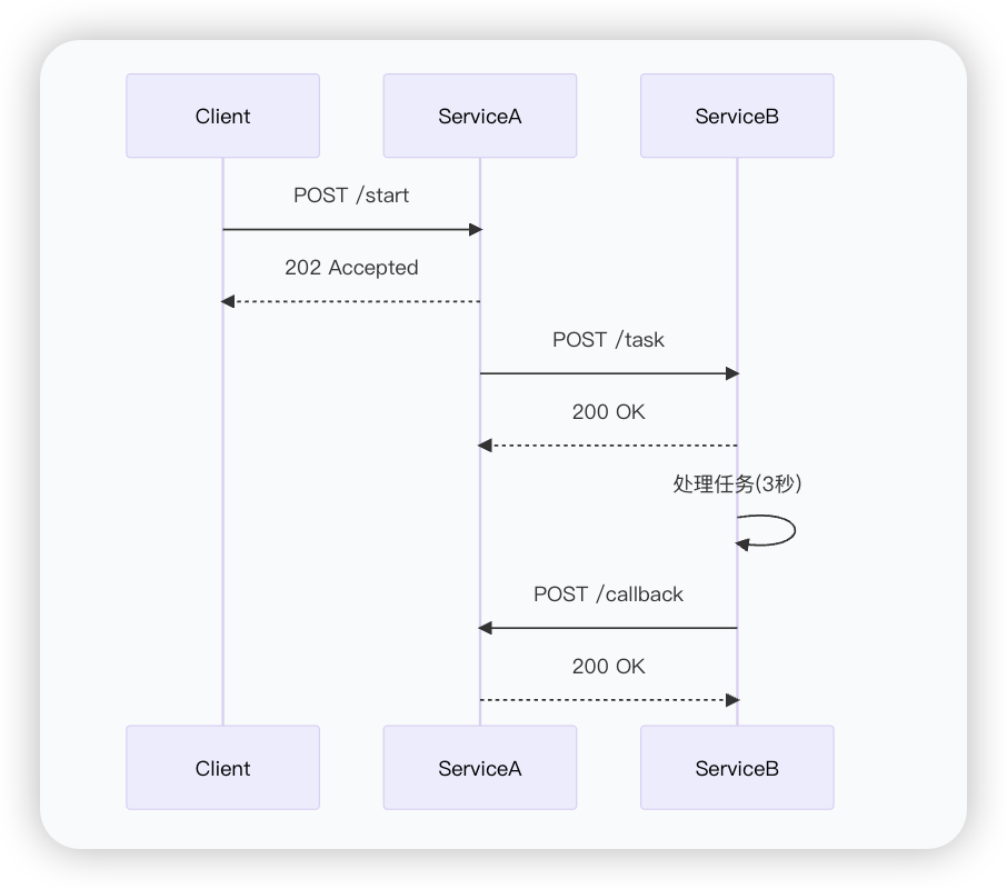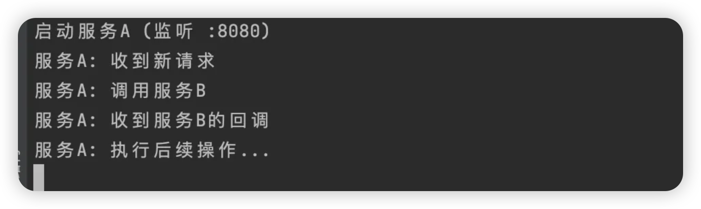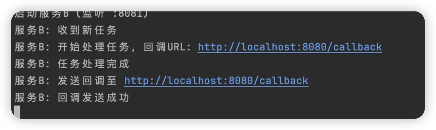 fmt.Printf("服务B: 发送回调至 %s\n", callbackURL)