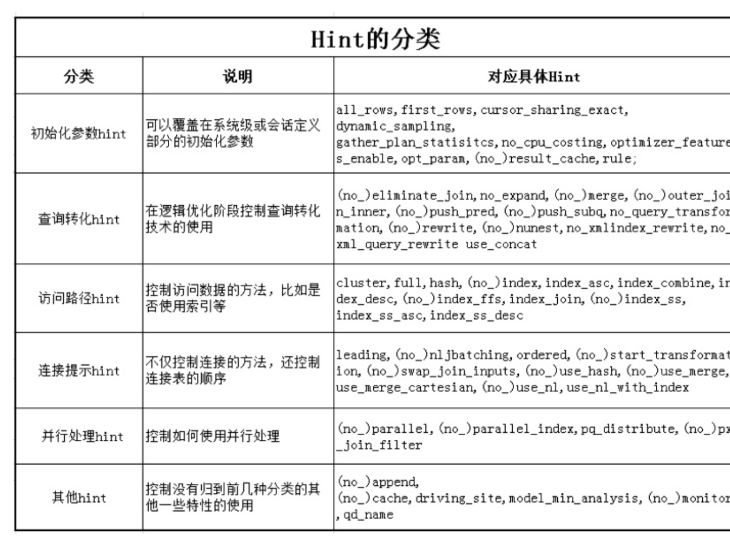Hint的种类有多种,如下表所示: