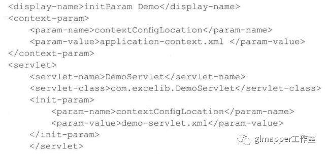 通过context-param配置的contextConfigLocation配置到了ServletContext中,再通过Servlet下的init-param配置的contextConfigLocation配置到ServletConfig中,在Servlet中可以通过getInitParameter方法获取具体的信息。