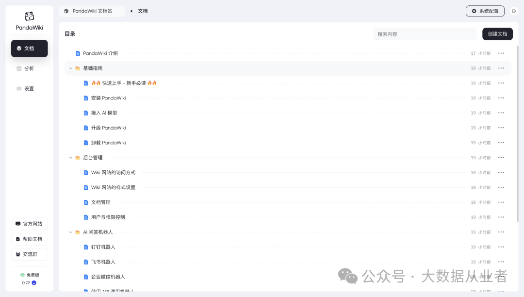 PandaWiki 自己的帮助文档就是基于 PandaWiki 自己来构建的,如图: