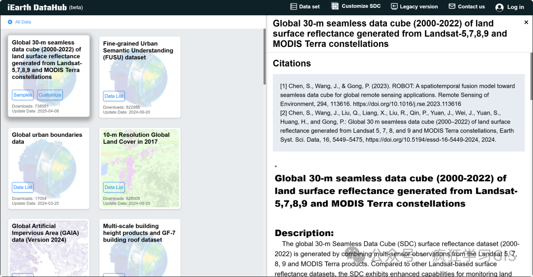FROM-GLC(Finer Resolution Observation and Monitoring of Global Land Cover)是清华大学开发的系列土地利用与覆盖产品数据集库,具有不同方法、不同空间分辨率、不同年份繁多的全球土地覆盖数据、不透水面数据等;如下图所示。