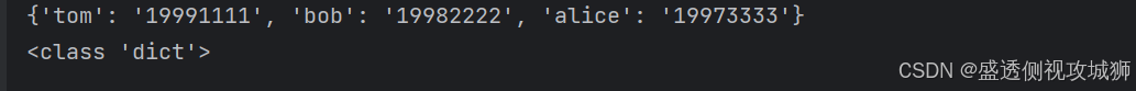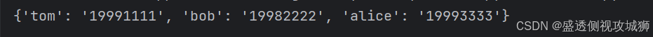 mobile = {'tom':'19991111','bob':'19982222','alice':'19973333'}