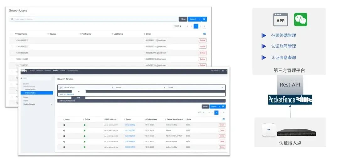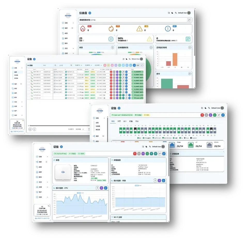统计与指纹识别: 自动识别终端类型、系统、在线状态、信号质量,记录上网行为与流量。