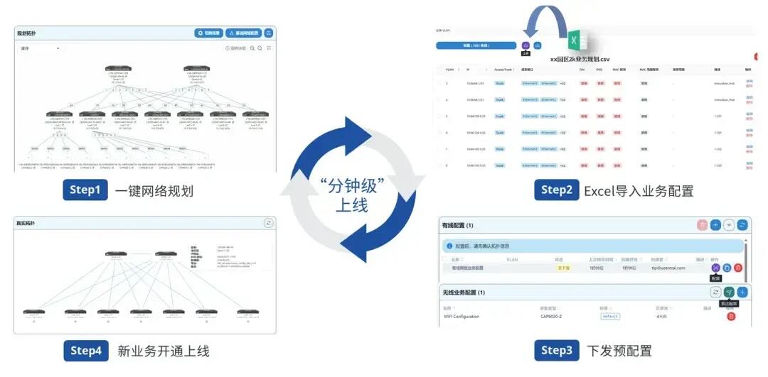 新一代云化园区网解决方案,创新性地将数据中心级的Spine/Leaf架构以及“全三层”、“云架构”、“超堆叠”、“云漫游”等设计理念应用于园区场景,显著提升网络服务质量和运维水平。