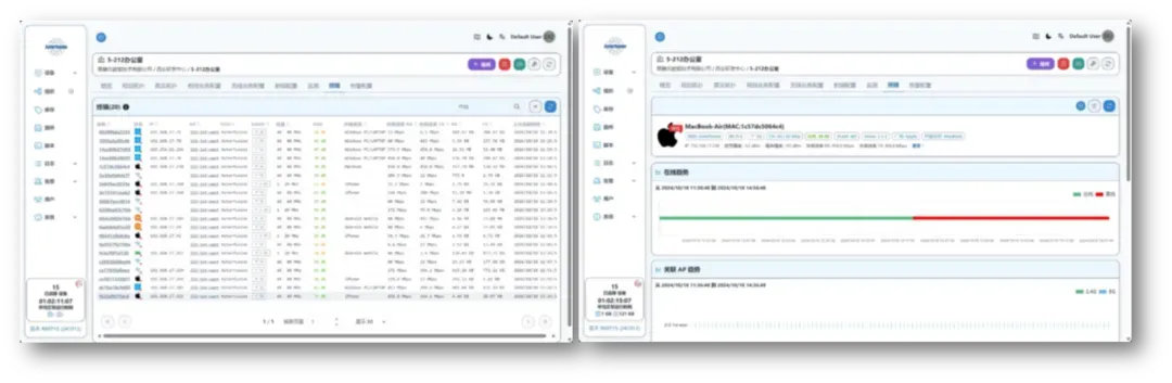 终端流量回溯: 完整追踪终端从上线到下线的连接状态、信号质量、协商速率、信噪比、关联AP位置等信息,极大提升无线用户问题定位与排障效率。