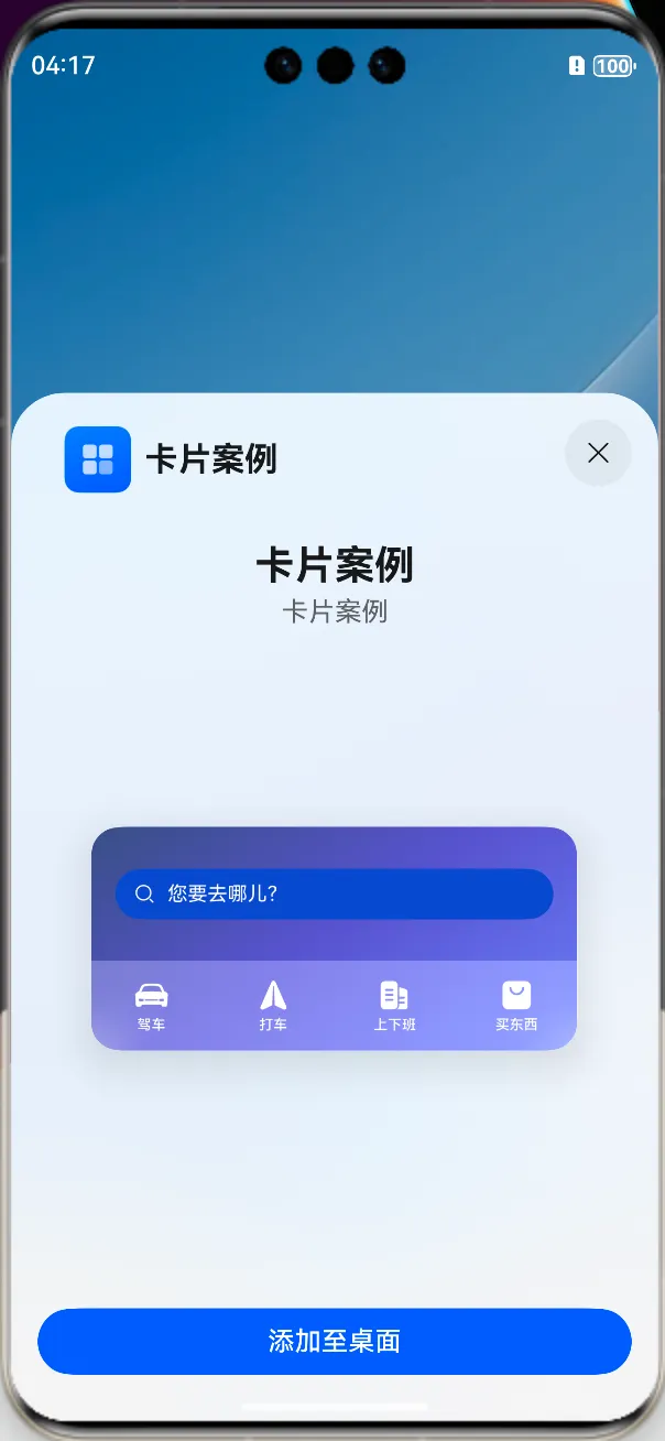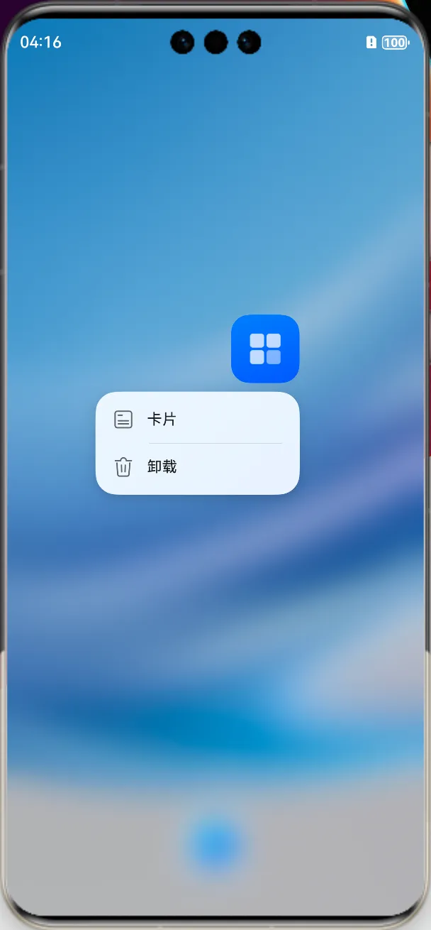如下的案例,目前已经开发了卡片功能,我们长按桌面图标之后,就会显示卡片的功能: