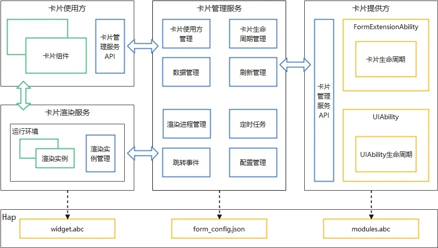 卡片管理服务,它是作为卡片提供方和使用方的桥梁,向使用方提供卡片信息查询、添加、删除等能力,同时向提供方提供卡片被添加、被删除、刷新、点击事件等通知能力,其实说白了,就是用于管理系统中所添加卡片的常驻代理服务。