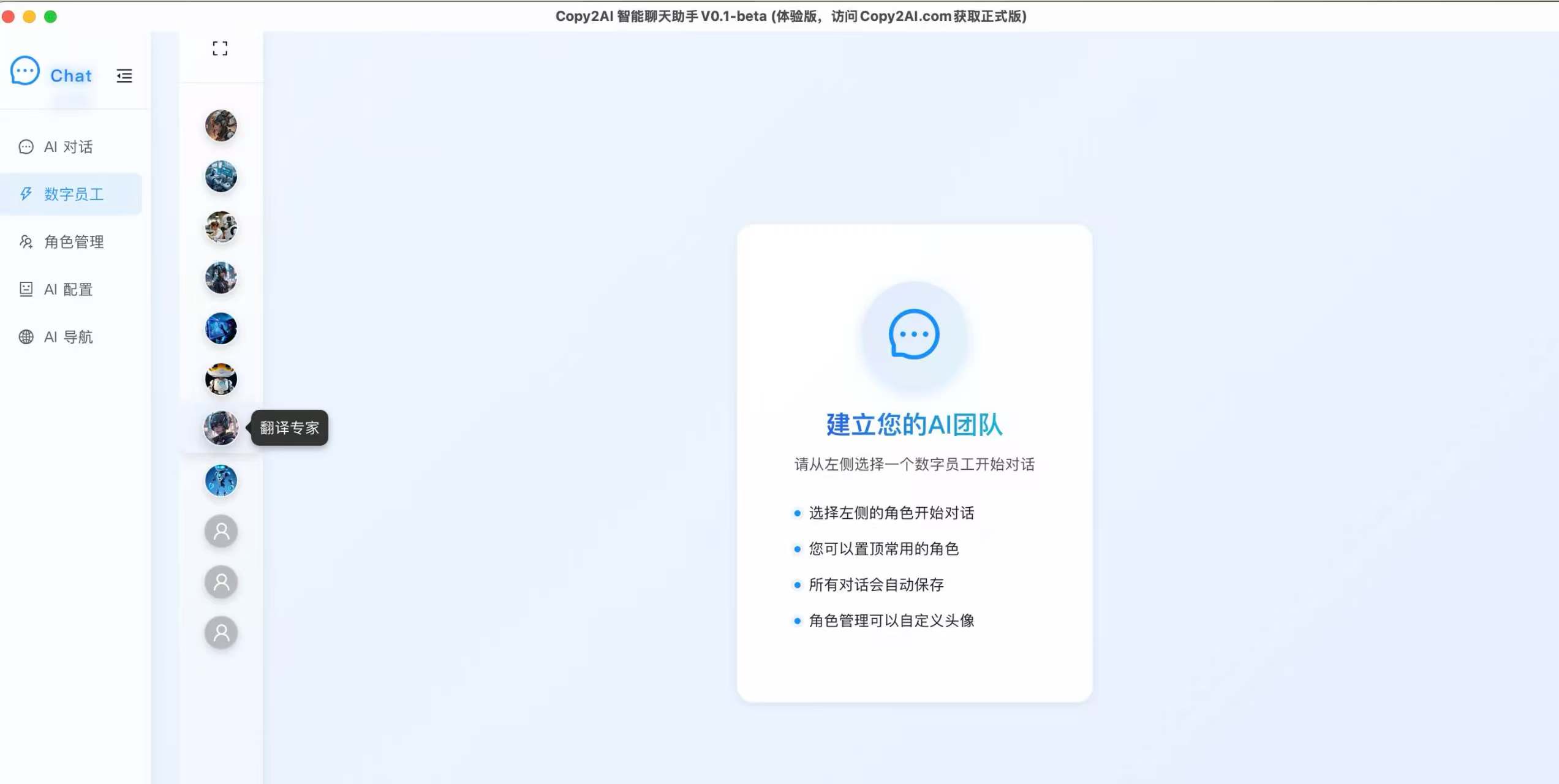该系统为用户配备了一系列预设的“数字员工”角色,涵盖写作助手、翻译专家、数据分析员等多元领域。用户只需依据自身需求一键切换角色,这些“数字员工”便能高效完成相应任务。例如,写作时面临开头难题,启用“写作助手”角色,它便能凭借海量文本数据与智能算法,为用户输出优质写作建议与灵感启发,助力用户突破创作瓶颈,宛如拥有了一个专业且高效的专属“智能团队”,全方位满足不同场景下的工作需求。