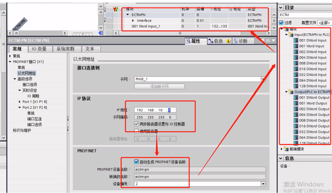 点击plc转到网络视图-右侧的硬件目录-其他现场设备profinetio-JM-ectm-pn